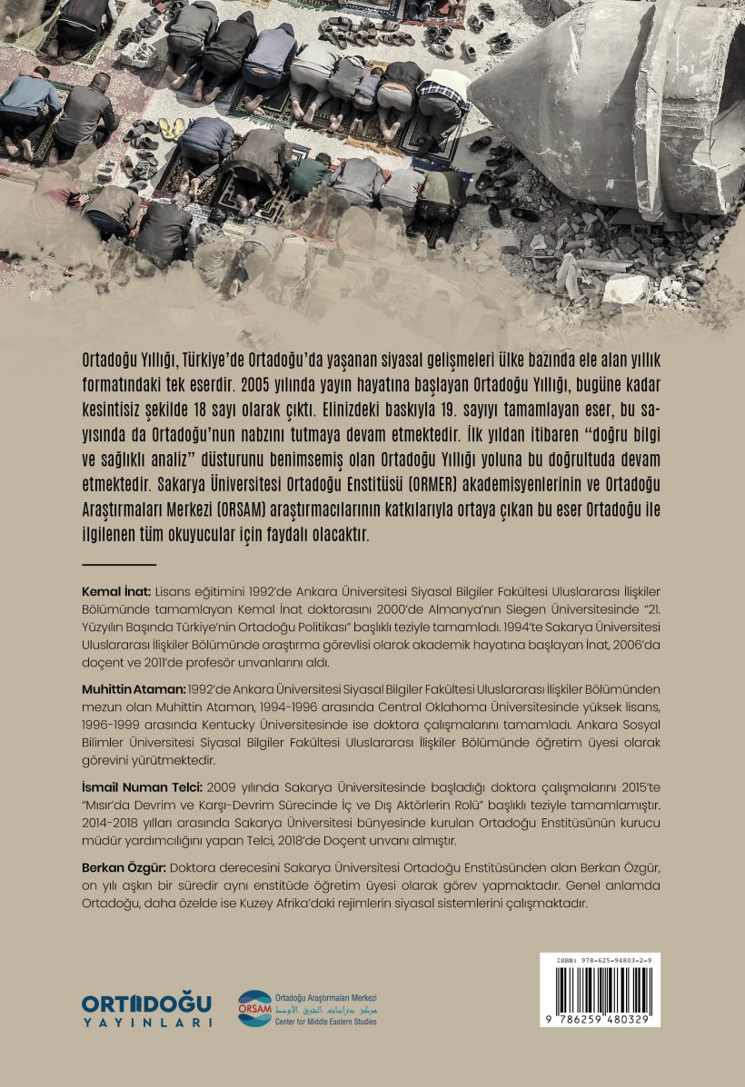 Bilgi kirliliği, çarpıtma ve dezenformasyonun yaygın olduğu günümüzde, Ortadoğu’nun doğrudan veya dolaylı olarak etkilendiği tüm bu tartışmaları kapsamlı ve derinlikli bir şekilde ele alan bu eserin, Ortadoğu üzerine doğru bilgiye ulaşma konusunda anlamlı bir katkı sunacağını düşünüyoruz. İlk yıldan itibaren “doğru bilgi ve sağlıklı analiz” düsturunu benimsemiş olan Ortadoğu Yıllığı yoluna bu doğrultuda devam etmektedir. Bu sayı da büyük oranda Sakarya Üniversitesi Ortadoğu Enstitüsü (ORMER) akademisyenlerinin ve Ortadoğu Araştırmaları Merkezi (ORSAM) araştırmacılarının katkılarıyla ortaya çıkmıştır.